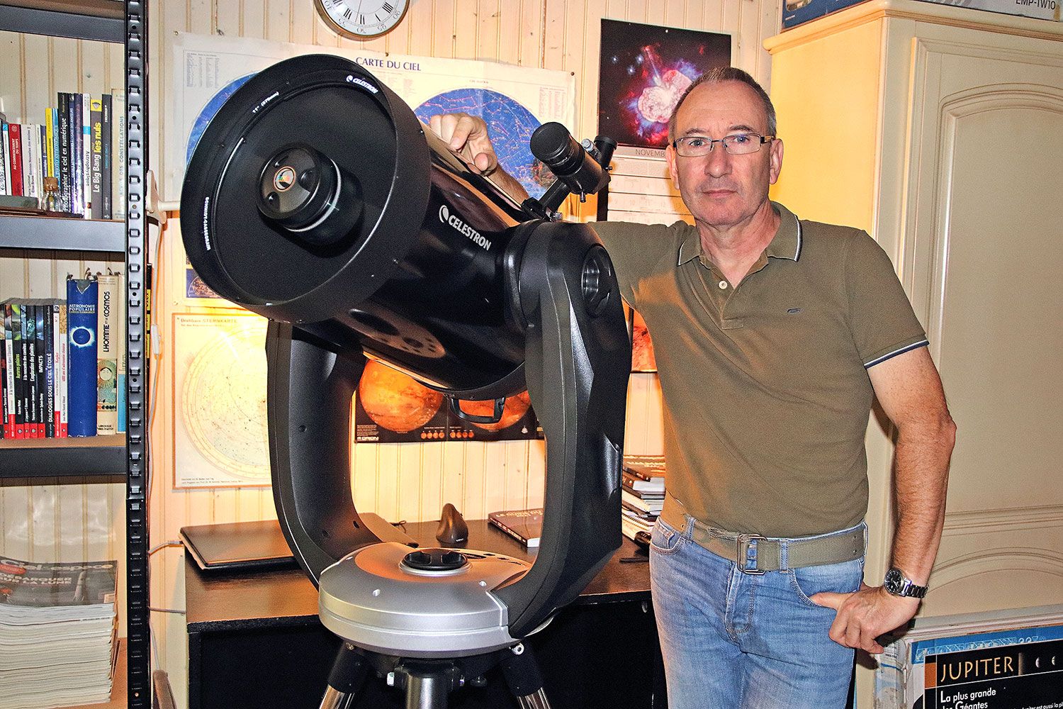 C'est en 2003 qu'Yves Bouzeau s'est lancé dans l'astronomie et comme de nombreux astronomes amateurs débutants, il a fait l'acquisition d'un télescope 114/900. Même s'il appréciait observer la Lune et les planètes du Système solaire, il restait sur sa faim concernant les nébuleuses et les galaxies, tous ces objets célestes dont la clarté est faible. Alors, en 2008, il achète un Celestron C11 de 280 mm de diamètre et les nuits d'observation s'enchaînent jusqu'au jour où il décide de voir plus grand, beaucoup plus grand car Yves Bouzeau veut voir plus loin... Alors, en 2012, il fait l'acquisition d'un télescope hors norme puisque le diamètre de son miroir est de 600 mm ! Cette fois, il joue dans la cour des grands mais tout comme Pascal Fournié, il a envie de partager sa passion pour l'astronomie. Avant l'achat du 600 mm, Yves s'était inscrit au Club d'astronomie de l'université du Mans. Il y est toujours adhérent.