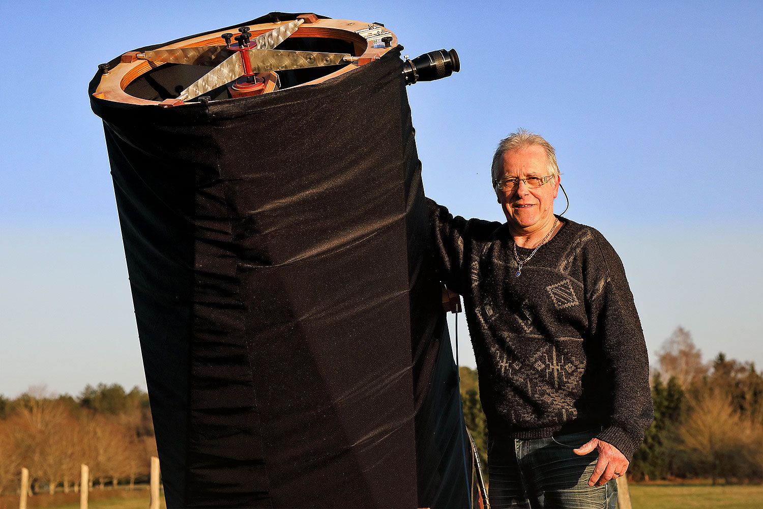 "Quand je suis sur mon escabeau en train d'observer, je me sens totalement en connexion avec le ciel. Le 600 nous donne de la profondeur et de la couleur que ne procurent pas les plus petits diamètres. Et aujourd'hui, j'ai la chance d'avoir ce que l'on appelle une binoculaire de vision nocturne conçue pour l'astronomie. L'OVNI-B nous emporte dans un autre monde encore plus époustouflant que le 600 mm et c'est un réel plaisir d'en faire profiter le public."